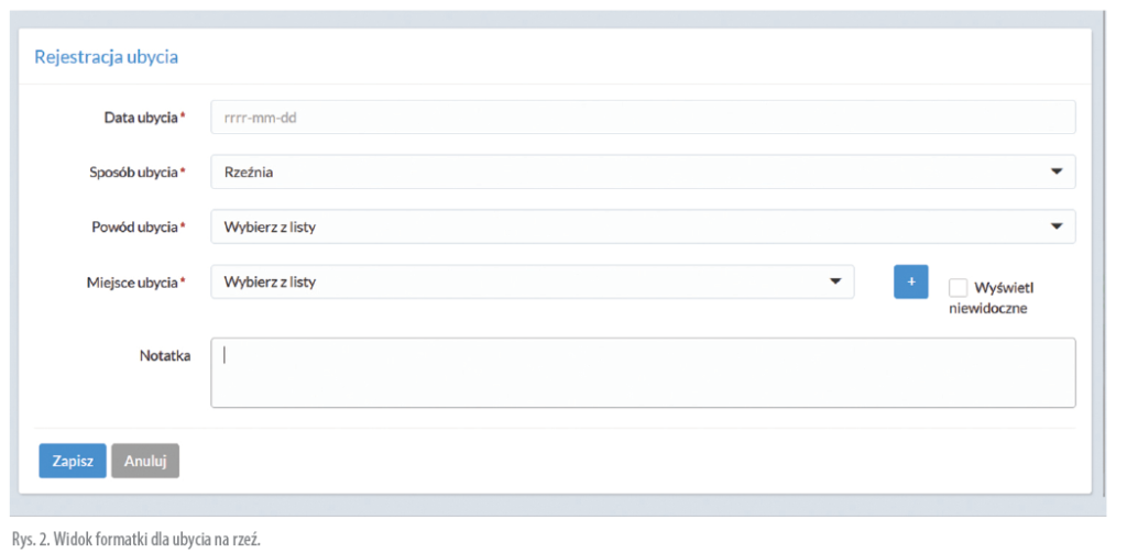 - przy „ubojach na własne potrzeby” nie ma konieczności wybierania sposobu ubycia (istnieje możliwość dodania tylko notatki);