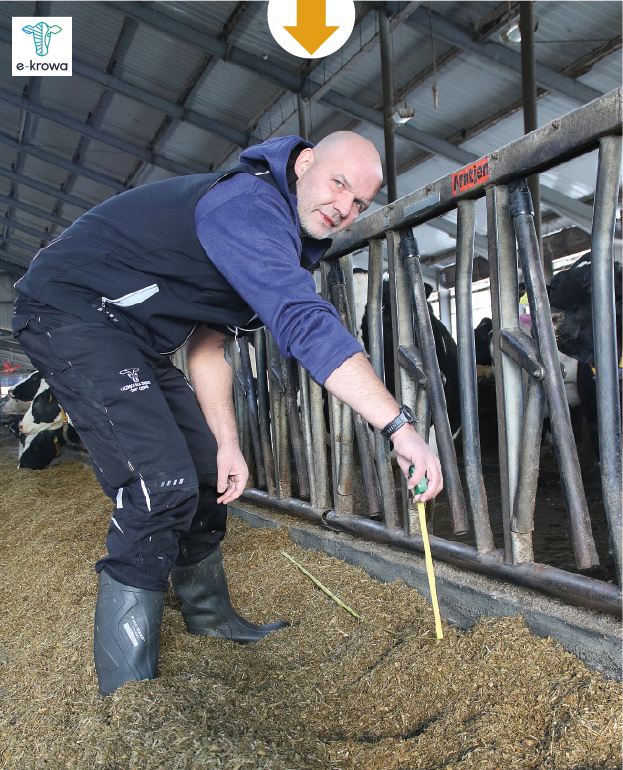 Jeśli zapewnimy minimum 75 cm dostępu do stołu paszowego – tak samo należy zamontować drabinę zatrzaskową – zmieszczą się wtedy większe krowy, te przed wycieleniem, a po nim nie dojdzie do walki o stół.