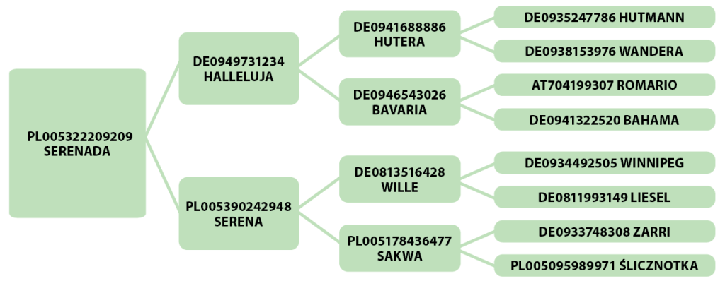 Serenada, urodzona 27 listopada 2018 r., jest córką niemieckiego buhaja Halleluja i wnuczką buhaja Wille. Obydwaj byli ojcami buhajów zarówno u nas, jak też w Niemczech i Austrii. Buhaj Wille dał się poznać jako bardzo dobry mleczarz, podnosząc parametry produkcji mlecznej swego potomstwa. Obydwaj przodkowie mają oszacowaną konwencjonalną wartość hodowlaną w Polsce metodą BLUP-AM, a ich zdolność do przekazywania pożądanych cech produkcyjnych i pokrojowych została potwierdzona również w realiach naszej populacji.