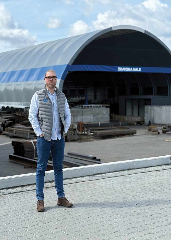 Na obszarach wiejskich pojawia się coraz więcej polskich hal namiotowych z Nowego Ochędzyna. Hodowcy chętnie korzystają z tańszych i – jak się okazuje w praktyce – trwałych substytutów murowanych obiektów inwentarskich. Oferta firmy SKAVSKA to nie tylko metalowe konstrukcje i plandeka, ale przede wszystkim wymierne partnerstwo, wizja i plan, który skutkuje systematycznym udoskonalaniem produktów i satysfakcją hodowców. Podczas rozmowy z redakcją „Hodowli i Chówu Bydła” prezes firmy Skavska Tomasz Betka nie krył, że to właśnie praktykom hodowli zawdzięcza szybki progres firmy oraz rozwój hal namiotowych i dwuspadowych w kierunkach wykraczających poza samo przechowywanie słomy.