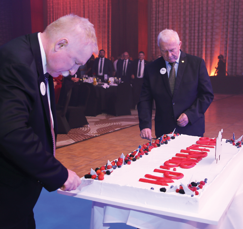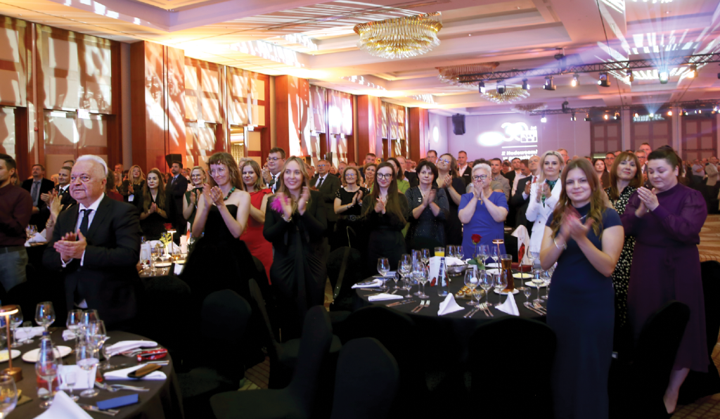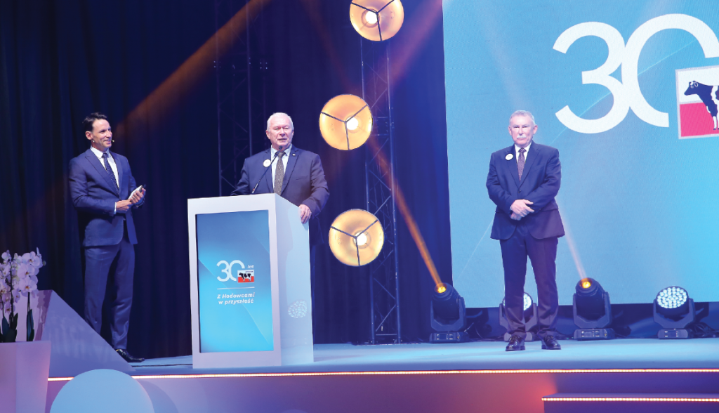Wieczorne spotkanie rozpoczął Prezydent Leszek Hądzlik kierując do zebranych słowa, które wszystkim zebranym zapadły głęboko w pamięci – „To wy jesteście sercem tej organizacji – wasza codzienna praca wsparcie hodowców, pasja i poświęcenie sprawiają, że polska hodowla i produkcja mleka utrzymują tak wysoki poziom”. W kolejnej odsłonie, przyszedł czas na wręczanie nagród i wyróżnień. Przybyły na tę część wydarzenia Jacek Czerniak – Sekretarz Stanu w Ministerstwie Rolnictwa i Rozwoju Wsi – wręczył wybranym pracownikom odznakę Zasłużony dla Rolnictwa. Następnie przystąpiono do wręczania specjalnych nagród 30-lecia. Wśród 11 kategorii wymienimy, przykładowo, tylko kilka: „Architekt Innowacji”, „Rzecznik Współpracy”, „Ambasador Jakości” czy „Filar Pozytywnej Energii”. W każdej grupie spośród 6 nominowanych osób kapituła wybierała jednego lidera. Już samo nominowanie do nagrody było nie lada zaszczytem, a laureaci często nie kryli wzruszenia. Pomijamy nazwiska osób nagrodzonych – wymienimy je w specjalnym numerze „Hodowli i Chowu Bydła”, również dlatego, że lista obejmuje ponad 100 nazwisk. Zrobimy mały wyjątek, ponieważ na koniec wręczono specjalne wyróżnienie. Tu mała dygresja. Współczesny świat każe nam być gotowym do wielokrotnej zmiany pracy. Co chwilę czytamy, jakie zawody wkrótce przestaną istnieć, a bez których nie damy sobie rady w przyszłości. Tymczasem pracami Polskiej Federacji od ponad 20 lat codziennie kierują Prezydent Leszek Hądzlik i Dyrektor Stanisław Kautz. Rozpoczynając od przysłowiowego ziarnka czyli jednego pracownika i jednej złotówki, wzorując się na Biblii, nie tylko nie zakopali otrzymanych talentów, ale pomnożyli plon wielokrotnie. Rzadko obaj panowie słyszą słowa uznania i podziękowania, dlatego nie kryli zaskoczenia, gdy nagle Tomasz Wolny poprosił ich o odebranie nagrody specjalnej „Lider. Strateg Sukcesu”. Nagroda wręczana przez zastępców dyrektora wywołała kilkuminutowe owacje na stojąco. Chwilę później Nagrodzeni pokroili jubileuszowy tort. Trzygodzinna gala minęła niepostrzeżenie, a potem do tańca i wspólnej zabawy porwał nas zespół Blue Café. A potem…