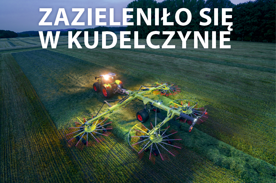 Stojąc przed kosiarkami w Kudelczynie, miałem nieodparte wrażenie, że gdzieś już je widziałem. I przypomniało mi się tegoroczne Zielone Agro Show w Ułężu. To tam były prezentowane jako największe dostępne kosiarki od firmy Claas. I faktycznie mknęły przez łąkę bardzo energicznie. Ponieważ całość areału Stelęgowskich przeznaczona jest pod pasze objętościowe, a struktura zasiewów to TUZ-y i rokrocznie lucerna oraz kukurydza, potrzebują oni wydajnego sprzętu do koszenia. Dlatego też i w tym segmencie zmienili kolor maszyn tnących na jasnozielony. Jak argumentuje Tadeusz Stęlegowski: – Kosiarka taśmowa Claas Disco 9700 CAS w układzie motyl ma 9,5 m szerokości i podobnie jak zgrabiarka jest sterowana poprzez ISOBUS z kabiny. Ma najbogatsze wyposażenie, w tym dodatkowe płozy zgarniające, i podwójną osłonę belki oraz dodatkowe oświetlenie. Prędkość posuwu taśm można regulować niezależnie, a kosiarka przednia jest sprzężona łączem z tylnym zestawem. W ciągu doby możemy wykosić aż 100 ha łąk.